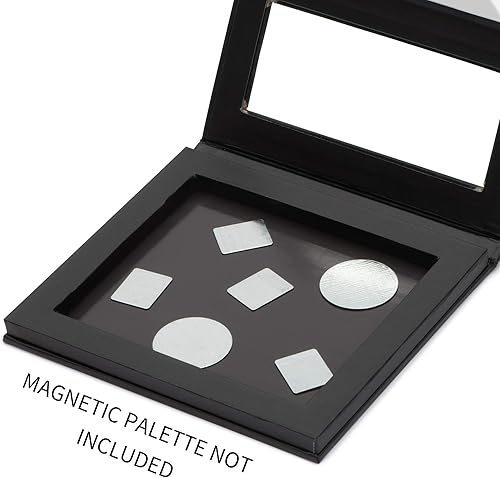 WHAT'S INCLUDED - Package Contains 10 Stickers - 5 - 25mm Round and 5 - 16mm x 13mm Rectangle Metal Magnetic Sticker Discs to be used for aluminum shadow, blush, highlighter and contour pans