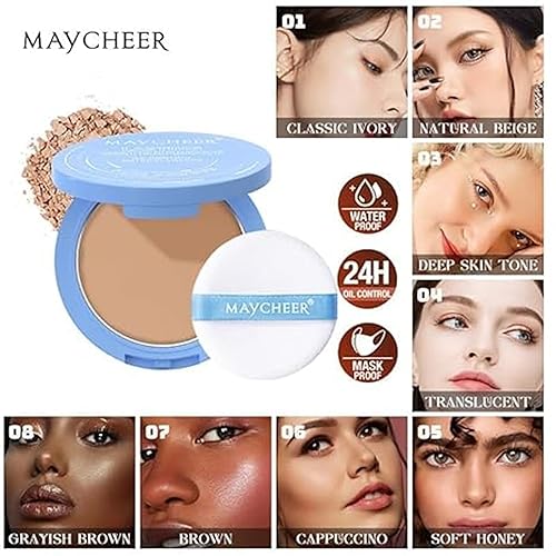 Comment on "Beauty Powder Cake for Makeup Hold, Lasting Waterproof Face Powder, Oil Control Face Pressed Powder, Matte Smooth Setting Powder Makeup (02+02, One Size)(06+07+08,0.35 Ounce (Pack of 1))"