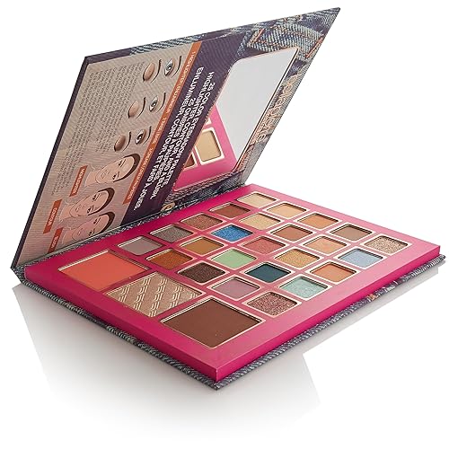 Product Benefits: Offers 25 eyeshadow shades and essential face products in one palette.