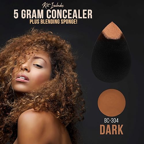 3 Additional Items: A 5 gram jar of Belloccio's dark shade concealer along with an egg shaped makeup blending sponge to apply it, plus a 1 oz. bottle of Belloccio's airbrush makeup finishing and setting spray.