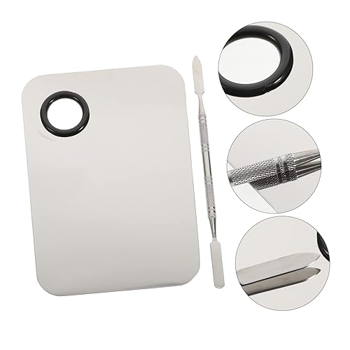 Color: silver,material: stainless steel,palette size: approx 15 x 10cm / 591 x 394 inch ( w),spatula length: approx 16cm / 629 inch,stainless steel color mixing stick,mixing plate for makeup