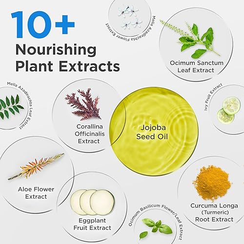 MULTI-PLANT SOOTHING COMPLEX — Enriched with neem, coral weed, aloe vera, basil and turmeric extracts to calm and nourish the delicate eye & lip area during cleansing.