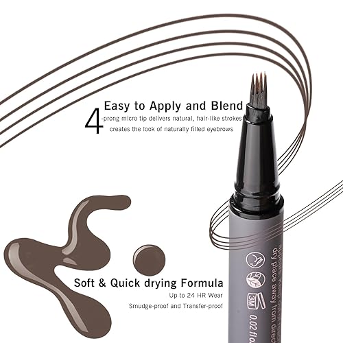 【Quick-Drying, Smudge-Proof】Our 4-prong eyebrow pen dries quickly to reduce smudging and allows easy layering. The long-lasting formula keeps your brows fresh and defined 24 hours.