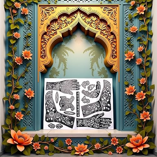 Black Henna Tattoo Kit Stencils,Temporary Reusable Unisex Tattoo Sets Indian Arabian Temporary Tattoo Templates Kit for Body Art Paint Temporary Tattoos Makeup