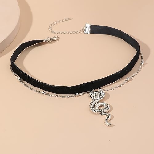 Black Velvet Choker Necklace Goth Silver Snake Dark Neckalce Punk Snake Velvet Suede Neckalce Dark Serpent Pendant Necklace