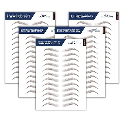 Bliss and Beyond USA Waterproof Eyebrow Tattoo Sticker - Valued Set of 5 Sheets - Long-Lasting, Natural-Looking Fake Eyebrow for Bald Spots, Alopecia, Ongoing Chemo, Cancer gift. | Same Size eyebrow tattoo stickers | Hairloss Solution (Natural Hollywood, Light Brown)(Natural Black,Natural Los Angeles)