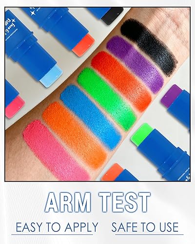 Smooth Creamy Texture -- Our blue body paint sticks have a smooth and fine texture that glides easily across the skin. They won’t feel heavy or greasy even when worn for a long time. Different colors blend naturally with each other, allowing you to easily create your own unique shade. Also, our body paint for adults s cruelty-free, because beauty should never come at the cost of creatures