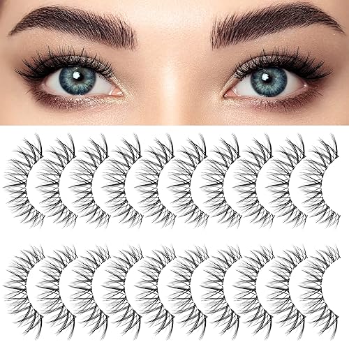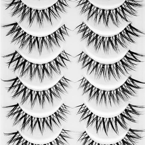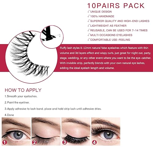 Bluesmurfs Fake Eyelashes Natural Look False Lashes Soft Thin Band Eyelashes Daily Use False Eyelashes 7 Pairs Pack(10 pairs-002)