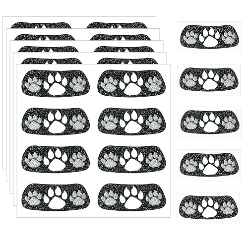 Ideal Size for Comfort: measuring approximately 0.71 x 1.77 inches/ 1.8 x 4.5 cm, each glitter paw print face tattoo for cheer fits snugly beneath your eyes without feeling cumbersome; Flaunt your favorite team's emblem effortlessly with these easy-to-wear eye black tattoos that highlight your loyalty in style