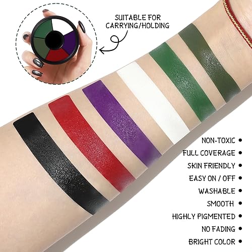 【Skin-Friendly & Long-Lasting】Made from non-toxic ingredients, this face paint is safe for all skin types. Note: Our face paint is washable. (Do not apply when it's raining.) These colors are also very easy to remove. Due to individual differences in skin sensitivity, we strongly recommend conducting a small skin patch test before use