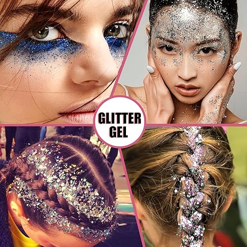 Festival Makeup Glitter Gel: Our gel provides intense sparkle and shine, each featuring a unique blend of multi-dimensional and multi-colored glitters, easy-to-use, mess-free. Adding a nice accent to your looks by using the glitter for specific events such as parties, festivals, concerts, and Halloween costumes. This color glitter gel can be used on the eyes, eyebrows, lips, cheeks, face, nails, hair and collarbone.