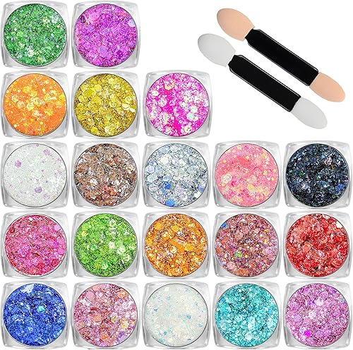 Sparkly Body Glitter Gel: Estanoite body glitter gel are very shiny and are made with high intensity pigments and holographic gloss, provided a sparkly and shiny effect that caught the light. It is a gel, you don't need any extra glues to keep the glitter on. Slap it on and you’re on your way. There are 20 vibrant and iridescent colors glitter gel to cater to different preferences and events. Each colour is packed with 7.6 grams/0.27 ounce.