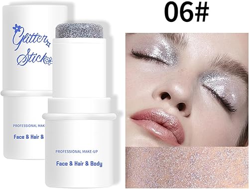 Body Glitter Stick - Sparkling Holographic Mermaid Sequins, Chunky Gel, Blue, Multiuse Face & Body Waterproof Paint(06#Silver)