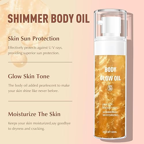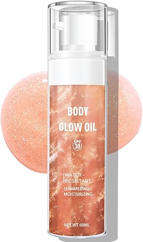 Comment on "Body Glow Oil, Broad Spectrum SPF 30 Shimmer Body Oil with Gold Mica Moisturizing Non-Sticky Glitter Lightweight Waterproof Skin Illuminator For Travel Outdoor Activities, Rose Gold(#1Gold)"