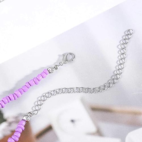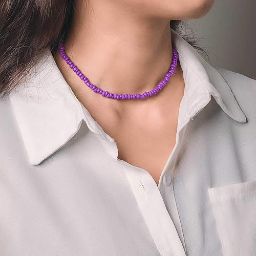 Boho Choker Necklace Bead Necklace Chain Beach Necklaces Jewelry for Women and Girls (Purple)(Purple)