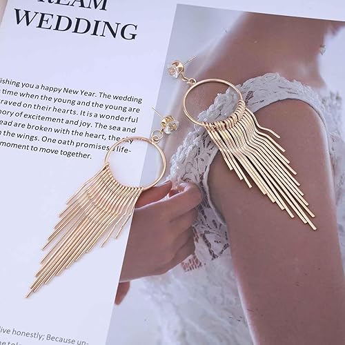 Comment on "Boho Circle Bar Drop Earrings Hollow Circle Dangle Earrings Gold Chain Tassel Earrings Long Metal Tassel Earrings Jewelry for Women"