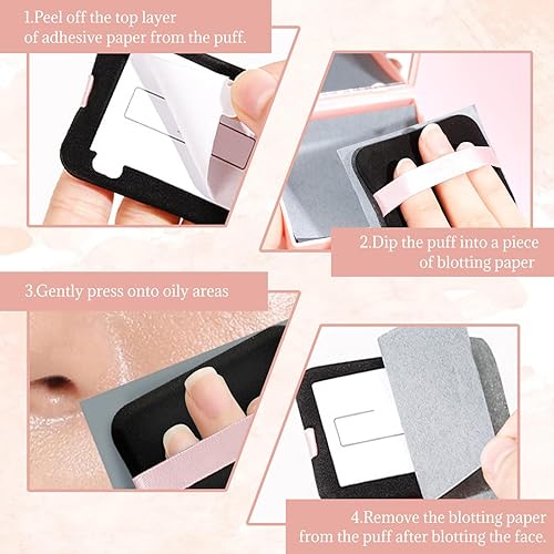 Convenient Design: Our Oil Blotting Paper Set comes with a portable mirror and a puff. Each puff uses adhesive stickers for efficient use of every sheet without waste.