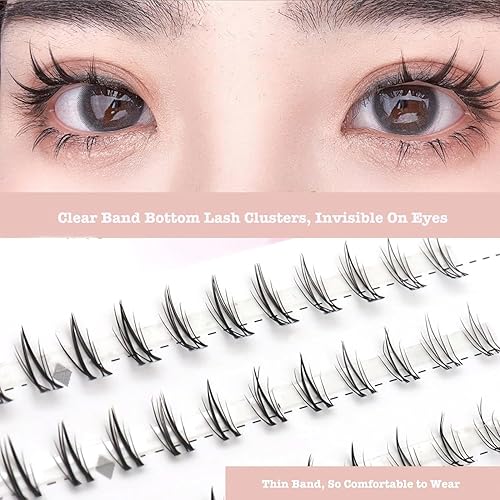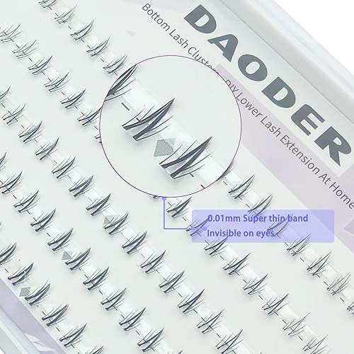 CLEAR LASH BAND: DAODER lash clusters feature light volume and short length crisscross lash fibers. With clear & thin, but durable lash band, hardly noticeable on eyes, the lash band part will not prick your eyelid area when you blink. These bottom lashes stay invisible and comfortable all day and all night!