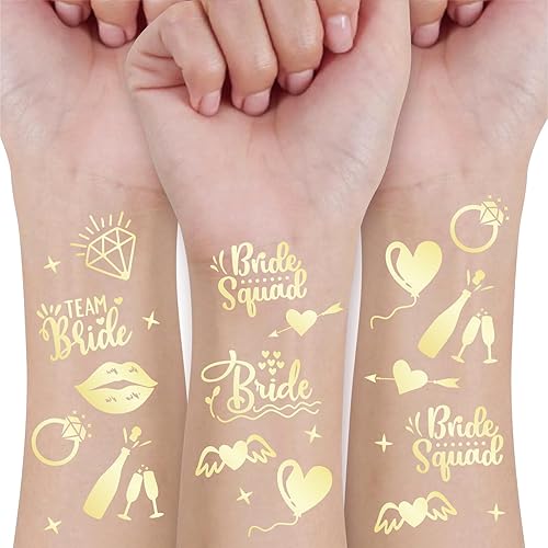 Comment on "Bride Squad 80+ PCS Bachelorette Temporary Tattoos -Bridesmaid Favor, Bride to Be Gift, Bridal Shower Supplies,Glitter Gold Metallic Tattoos Bachelor Party Favors(Gold E)"