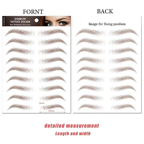Waterproof and long-lasting - Unlike cosmetic tattoos and permanent embroidery, our eyebrows definitely do not cause damage or wounds to the skin and have no recovery time. Made of waterproof pigment, it is not easy to fall off, not easy to fade, and can even be stored for 3-5 days when used properly. The shape of the eyebrows on the back of each eyebrow sticker is the same, so you can compare the lines of your eyebrows to find the right position for the best results.