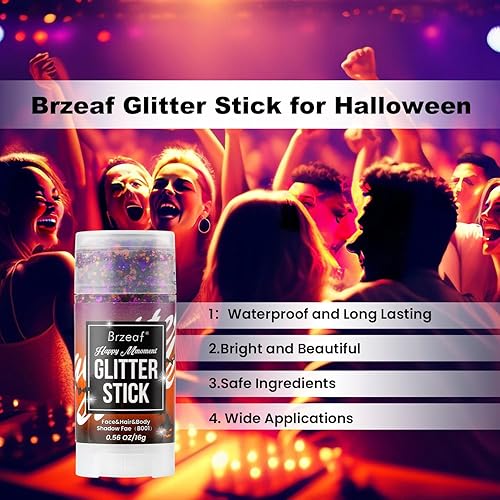【Bright and Lasting Hold】Our halloween body glitter stick is makeup product designed specifically for use as accessories for halloween events. Our face glitter stick will sparkle and shine, the color and shine of the sequins change with visual changes, releasing a dazzling light, allowing you to party and create your own sparkling look.