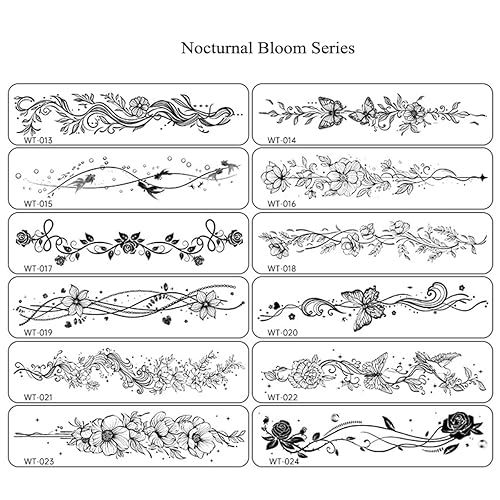 Calnklily 12 Pieces Large Temporary Tattoos for Women, Girls and Adults – Sexy Floral and Butterfly Design Leg and Body Tattoos, Realistic-Looking Girl’s Body Art Stickers. (Nocturnal Bloom)(Nocturnal Bloom)