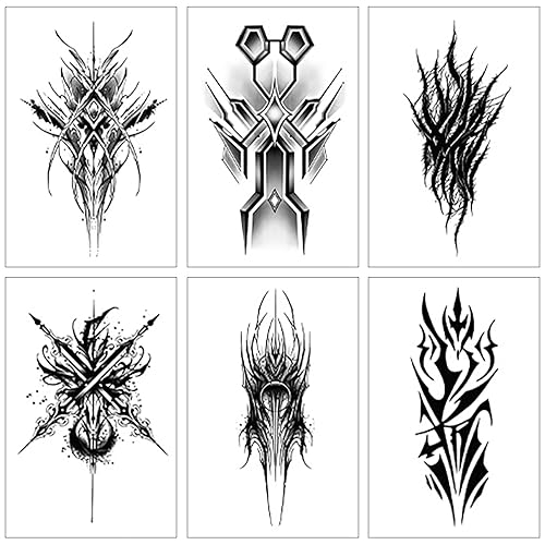 【Style and Elements】6 sheets of cyberpunk mechanical temporary tattoos including mechanical, line, guardian, sword and more.