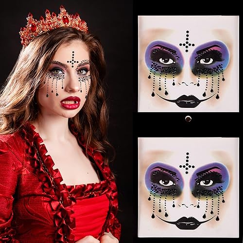 Sparkling Rhinestone Quality: Made Mysterious Black Cat Design:Features an alluring cat eye and delicate whisker design made from sparkling black rhinestones. This unique pattern adds a touch of magical, mischievous elegance to your Halloween or festival makeup, perfect for creating a witch's familiar or a mystical cat persona.with premium acrylic rhinestones that are finely faceted to catch and reflect light from every angle. The high-shine finish ensures your face jewels stand out, even in dim party lighting, for a truly dazzling effect.
