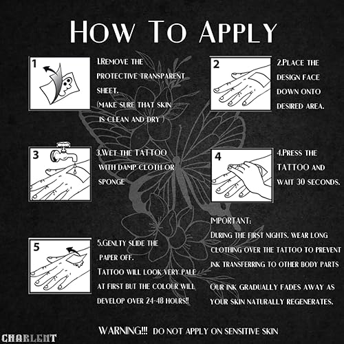 ⚡Awesome Realistic Long-Lasting Tattoos -- Semi-permanent tech, tattoo sits in your skin, not on top of it.THE TATTOOS WILL TAKE 12-24 HOURS TO DARKEN OVER THE COURSE ON YOUR SKIN and LASTS UP TO 1-2 WEEKS,waterproof, friction-resistant. It is so real and comparable to the real tattoo.