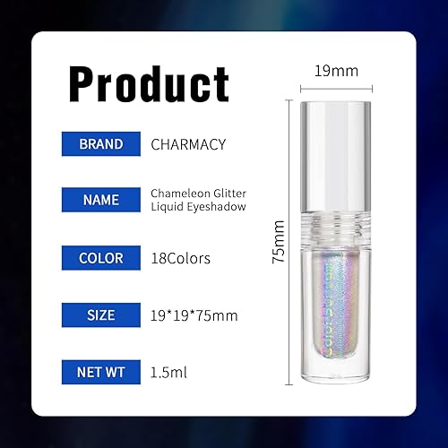 CHARMACY 2 in 1 Starlit Duochrome Liquid Eyeshadow, Glitter Sparkle Colorful Liquid Eyeliner, Quick Drying, High Pigmented, Long lasting Holographic Glitter Multichrome Eye Makeup #03(#14)