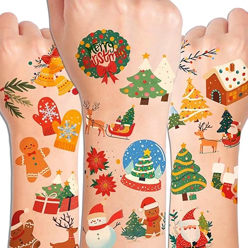 ⚡Set Includes 74 Christmas Styles Tattoos for Kids Christmas Party Decorations -- Features classic holiday elements like Santa Claus, snowmen, Christmas trees, gingerbread men, and festive wreaths for instant yuletide cheer.