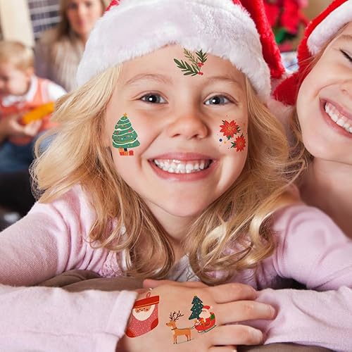 ⚡Kids Chrismas Theme Tattoo Stickers -- Our Xmas tattoos are safe for your little ones,each tattoo is made of standard quantity material and green paper. These are kid removable temporary tattoos! With these fake tattoos, your kids can deck themselves out with colourful designs that wash or peel off later. Have fun with our collection of removable temporary tattoos for kids.