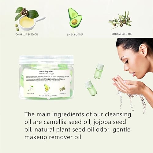 [Quick Makeup Dissolves]: Camellia cleansing oil dissolves makeup with oil, clean and no residue, it is mild and clean, no fear of makeup residue, natural oil components, light and light water sense, refreshing and no greasy throughout. Remove makeup, clean and nourish skin in one. Make Up remover oil with camellia essence can effectively remove traces of waterproof makeup, dissolve impurities in mascara, eyeliner and foundation.