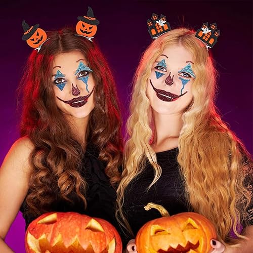 Clown Face Makeup Stickers for Halloween Carnival Party, 3D Gemstone Rhinestone Gems, Scary Confused Glitter Tattoo (Medium, Count, 4)(Medium,1)