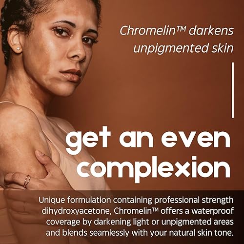 PROFESSIONAL STRENGTH SKIN DYE: Chromelin Complexion Blender is a professional strength dihydroxyacetone dermal dye designed to darken light or unpigmented areas of skin affected by vitiligo, scars, stretch marks, and more. This potent formula for hypopigmentation offers an effective treatment for those seeking professional-grade coverup results at home.