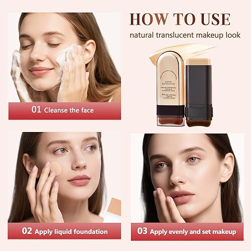 【Easy Application with Double-Ended Brush】This stick foundation full coverage have the double-headed design features an M-shaped brush for effortless application. The soft bristles adapt to facial curves, making it simple to apply foundation and contour details like the nose, mouth corners, and eye area.