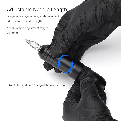 2. 【Tattoo Pen】Adjustable needle length from 0-3.5mm, speed 8V 9000 rpm,powerful, can be used for shader and liner, suitable for tattoo beginner and artist.