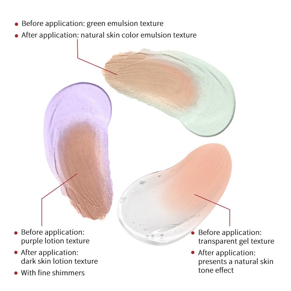 Color correcting -- It can be used as a primer before makeup, has a strong concealing power, and can correct various blemishes. It make the skin look flawless and better restore the original beauty of the skin.