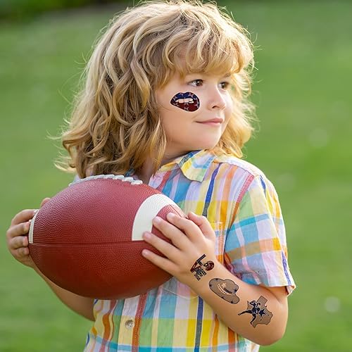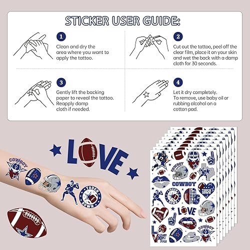 Safe and Skin-friendly: These cowboy football tattoo stickers are made of skin-safe materials, gentle on delicate skin, beautiful patterns, safe for children, kids and teenagers, can be firmly fixed where you want, and ensure that they can be easily removed when needed