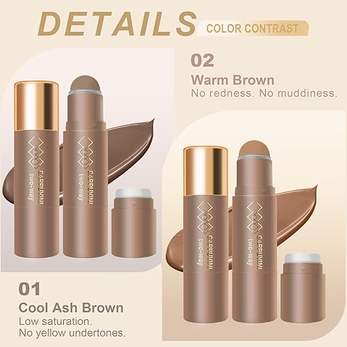 Comment on "Cream Contour Stick for Warm Brown Skin,Warm Nose Contour Makeup Built-in Sponge, Smooth Long Lasting Bronzer, Blendable Lightweight Contouring Stick #02 Warm Brown(01 Cool Ash Brown,1pcs)"