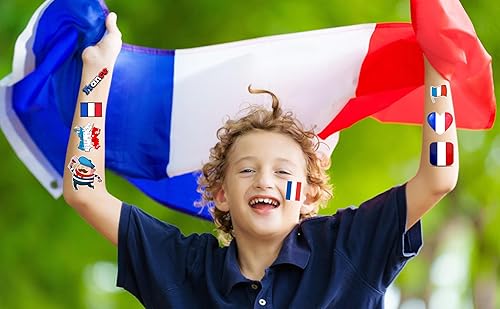 CupaPlay 168 PCS France Tattoos Temporary Stickers French Flag Paris Theme Party Supplies Decorations Birthday Goodie Bag Stuffers Favors Prize Tattoo