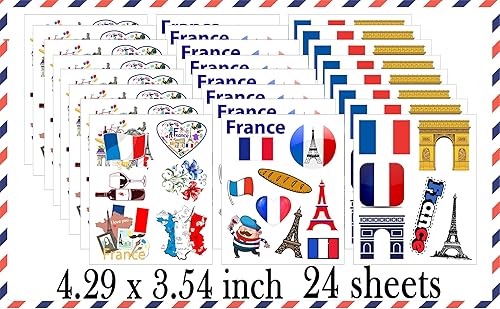 Package of 168 pcs France themed temporary tattoos with more than 21 designs.