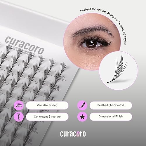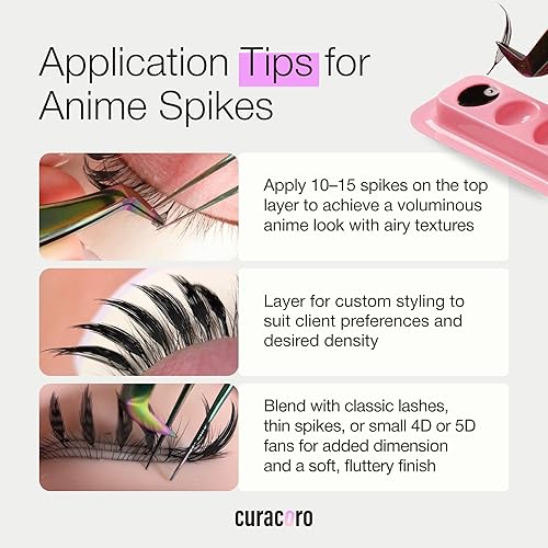 PRECISE LASER-PRINTED SPIKES: Curacoro Anime Feather Spikes are crafted with advanced laser-printing technology to create sharp, uniform “mountain-like” spikes inspired by anime, manhua, and manga visuals. Designed for consistent shape retention in anime lash extensions and spike lashes. Absorb less adhesive than standard lashes - use thicker viscosity glue, dip slightly deeper, and avoid fast-drying glues unless highly experienced.
