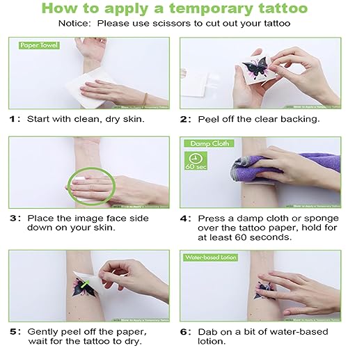 【EASY TO USE】Using our customized temporary tattoo is very simple. Simply place the tattoo sticker on clean, dry skin and press gently with a damp cloth or sponge. Wait for at least 30 seconds, then remove backing paper, let tattoo pattern dry, and you can easily enjoy your photo tattoo. When you want to remove the tattoo, rub the tattoo with a little oil and wash the area with soap and water.
