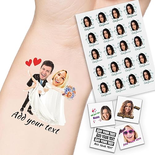 Customized temporary tattoos:Turn your face and name into fun temporary tattoos designed for memorable events. You can freely choose the style we provide, upload the text and photos required for the tattoo, and we will cut out the required facial outline. It is recommended to upload high-resolution photos, and they will be clearer when printed.