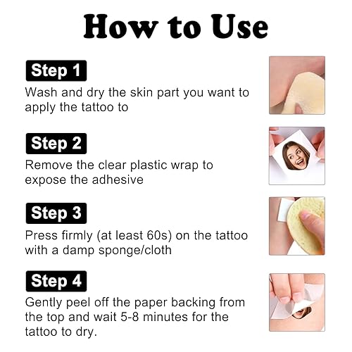 Skin-friendly and waterproof: Our custom face tattoos are made of non-toxic ink and materials, which are skin-friendly and waterproof. Just press with a damp cloth to apply the customized temporary waterproof tattoo. The temporary tattoo photo can stay on your body for up to 1 week in 30 seconds, and the color is bright and waterproof. If you want to remove the custom tattoo, just wash the fake tattoo area with a small amount of oil or rubbing alcohol