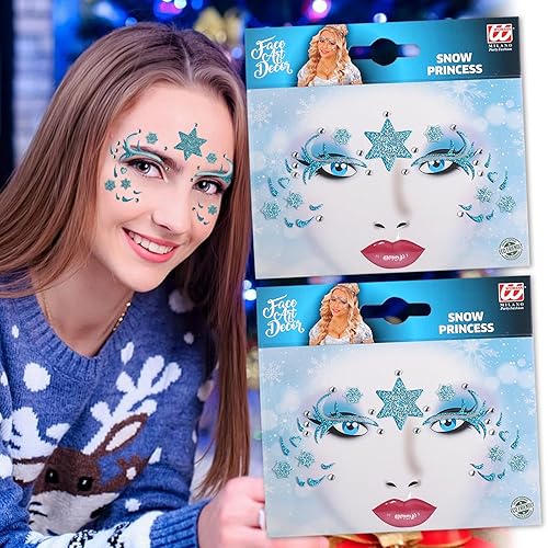 Cute Deer Face Stickers Animal Face Jewel Sticker Christmas Face Sticker Glitter Sparkling Face Art Stickers Party Face Eye Decoration for Christmas,Make Up,Halloween Party 2Pcs(01)