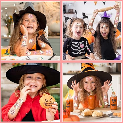 Unique and novel design: These bow ghost tattoos were Inspired by iconic Halloween motifs like bows, ghosts, pumpkins, and bats.Our decorations feature a delightful mix of pastel pink and Halloween motifs, adding a unique and stylish flair to your Halloween birthday party decorations.