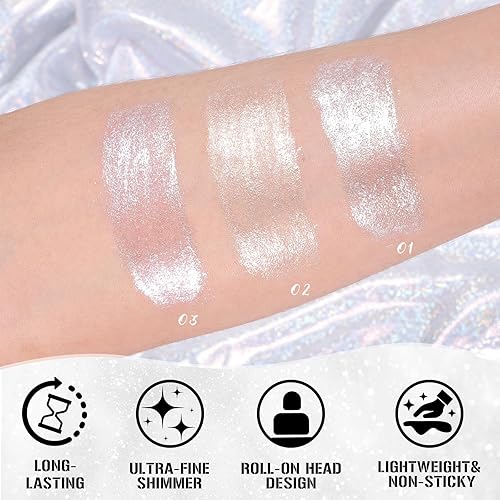 UNIQUE DESIGN: Unlike common highlighter cosmetic product designs, this liquid highlighter features a rollerball head design, offering a unique and innovative user experience. A fine shimmer, imparts a natural glow to your skin due to its high refractive index pearlescent properties, enhancing the brightness and luster of your skin.