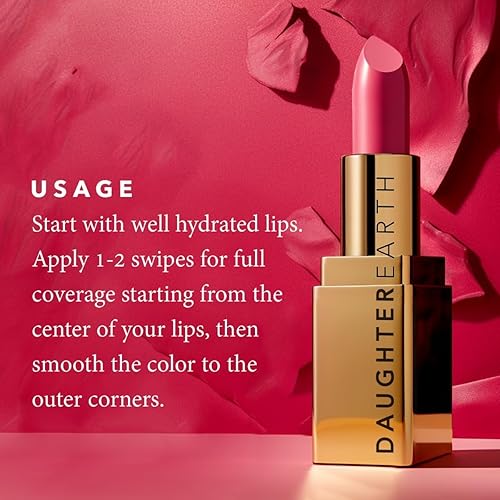 DAUGHTER EARTH Atomic Red Natural Lipstick | Vegan Plant Based Highly Pigmented Lightweight